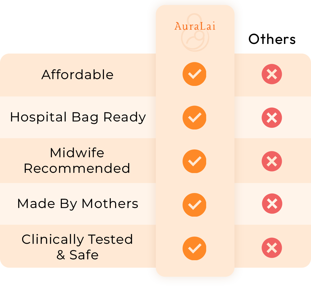 The AuraLai Gift Box is thoughtfully curated by mums, for mums, to help you feel confident, supported, and prepared from day one.
