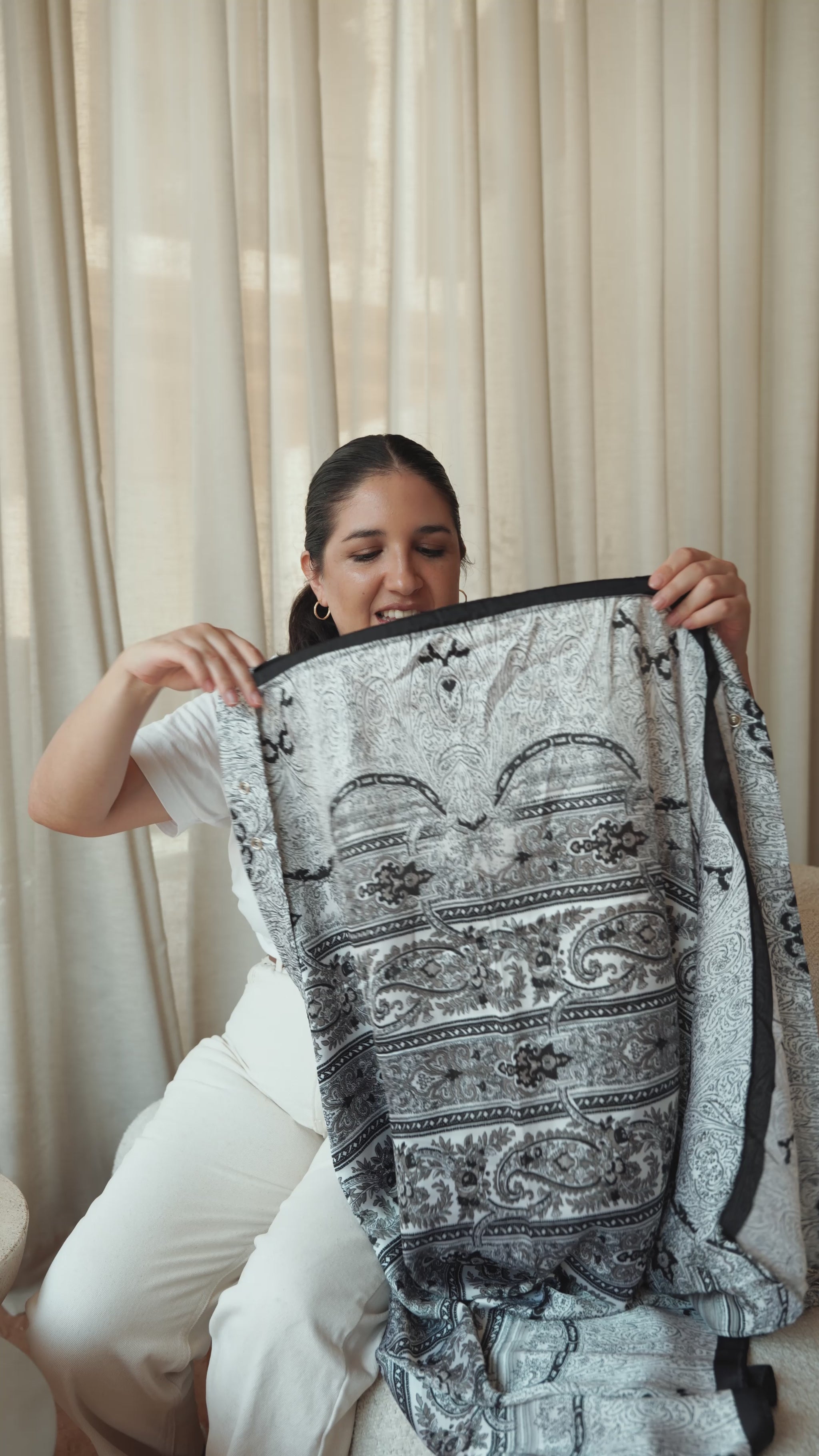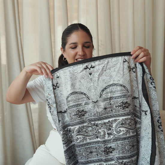 A nursing cover that transcends function, evolving fluidly into a scarf, sarong, or dress.
